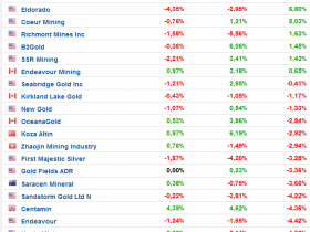 Dollar................ + 0,7%Die Goldminen insgesamt stiegen entgegen schwachem Gold und mit stärkerem Gold.