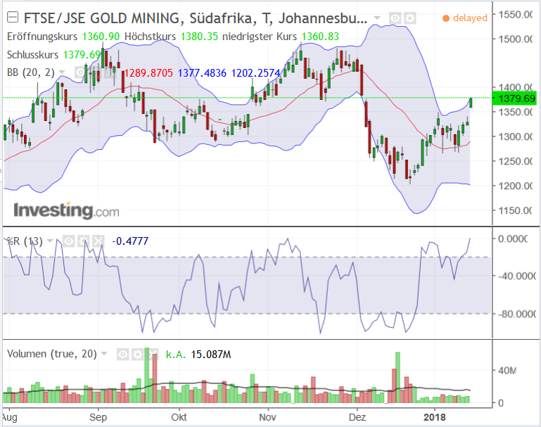 BDR über 11%, SLR über 10%, WGX + EVN über 6%, RSG + GOR über 5%, NST + SBM über 4% und sogar das Dickschiff NCM schafft fast 3 % Plus! - Der starke Sprung deutet die relative Unterbewertung der Aussi-Minen an.