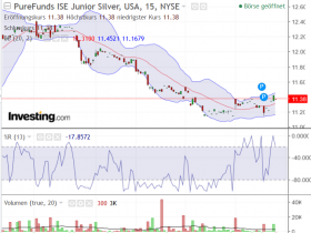 Seit dem 2.1. war das Chartbild des SIL (Global Silber Miner ETF) nicht stabil. Der Ausbruch über das letzte Hoch aus dem Dezember erfolgte mit einem Gap (Kurslücke), dann fiel die Durchschnittslinie des Momentumindikators (purpur) und die Kursbewegungen wurden immer volatiler.