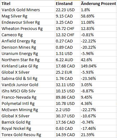 Allen voran meine beiden Schwergewichte Ramelius Resources und Silver Lake Resources kennen derzeit nur eine Richtung, auch Perseus hat sich super entwickelt.