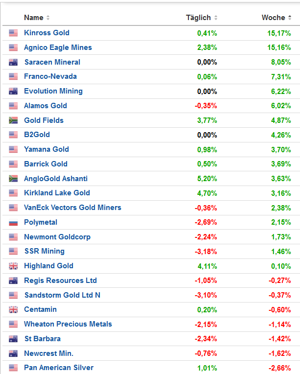 • Bei den Minen kommt heute wieder Freude auf.
