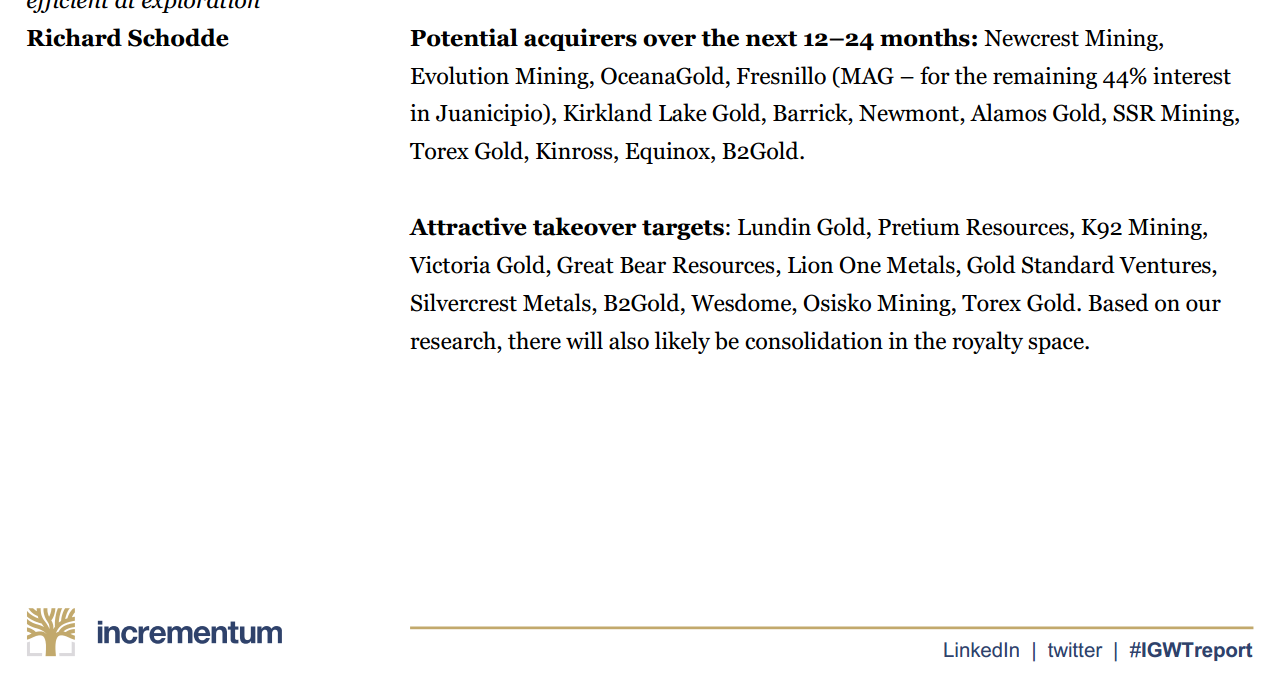 Die Mine oder Gesellschaft die Du in mühevoller Kleinstarbeit raus recherchiert hast wird in eine grosse Gesellschaft eingegliedert und verliert dadurch einen großen Teil ihres Potentials. Dann kann ich gleich den GDX oder GDXJ kaufen und spare mir die Arbeit....ich möchte Klasse und Outperformance im Depot und nicht Masse...
