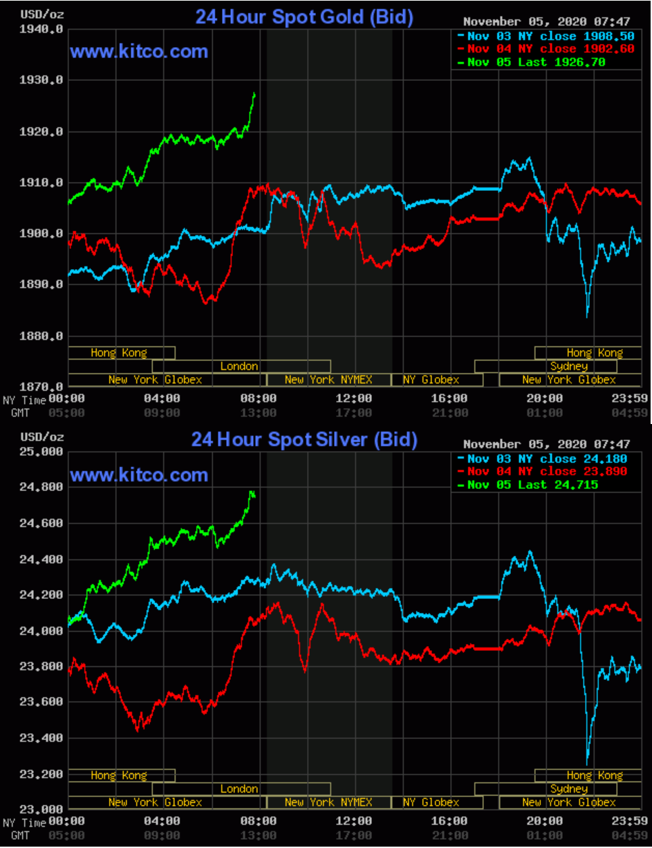 Nachdem Biden das größere Konjunkturpaket versprochen hat, also mehr Geld drucken will als Trump, ist für die kurzfristige Goldpreisentwicklung ein Biden-Sieg vorteilhafter. Damit wäre die Korrektur bei Gold sicher beendet.