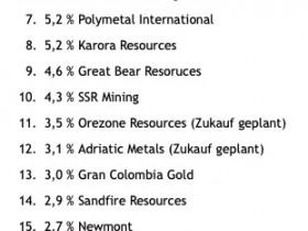 Den größten Spass machen mir natürlich trotzdem die Explorer und Developer. Zahlenmäßig klar führend, allerdings deutlich prozentual am Depotvolumen deutlich untergewichtet. Größere Summen sind hier dann wirklich einfach Harakiri. Hier bin ich auch weniger kritisch, was die politische Lage betrifft. Bis hier Projekte in Produktion gehen, vergehen oftmals Jahre. Mein Favorit ist ganz klar Volcanic Gold. Die Grades sind bombastisch, da schaue ich über Guatemala auch mal hinweg.