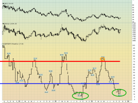 Beachten Sie außerdem die Entwicklung des BPGDM-Stochastik-Oszillators am unteren Rand des Diagramms. Ich verwende die 14,5,5er-Reihe für Wochencharts. Dieser wichtige Oszillator ist massiv überverkauft; selbst nach dem gewaltigen Anstieg bei Gold, Silber und den Minenwerten liegen sowohl die Leit- als auch die Nachlauflinie immer noch unter 20.