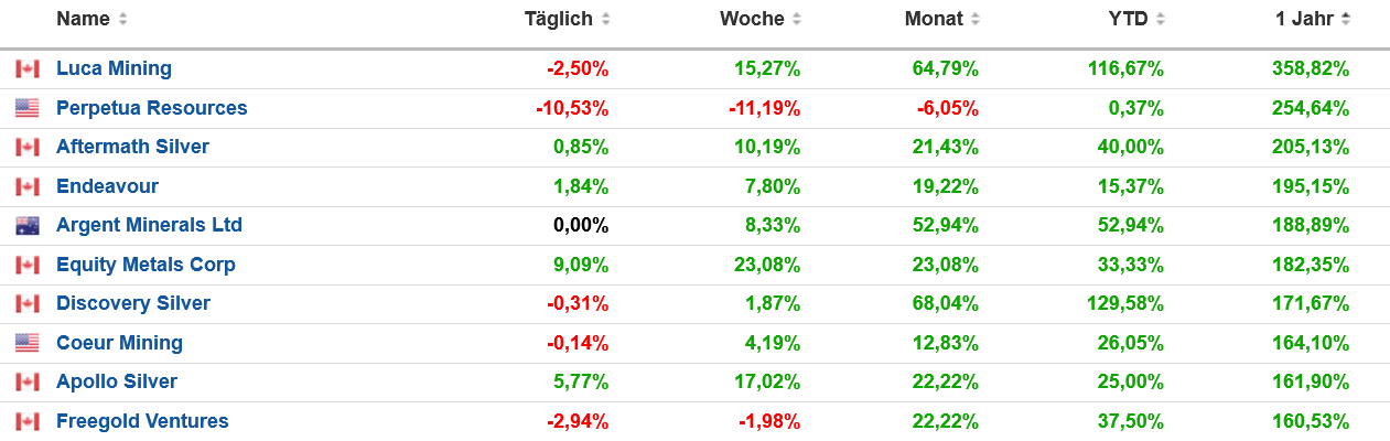 Explorer und Silberminen sind nicht im Bullenmarkt angekommen. Bei einem Gold/Silber Ratio von 1:102 ist das auch nicht möglich und erwartbar. Der Hebel bei Bewegungen von Gold und Silber wirkt bei Explorern und Silberminen zurzeit v. a. gegen unten und kaum nach oben. Heute sind Gold mit 3.5 % und Silber mit 1.5 % im Plus und mein Depot schreibt einen roten Tag...