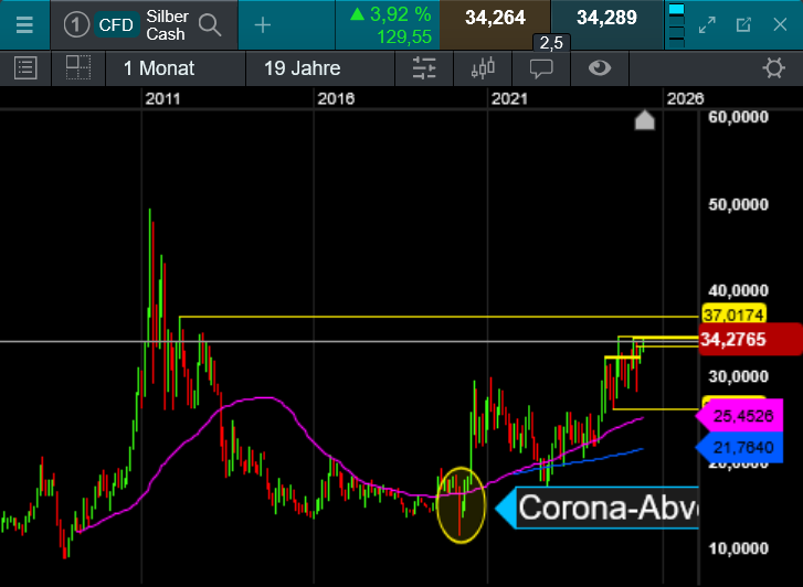 • Bei Silber sollten wir durch sein und bleiben morgen hoffentlich über 35 $ auf Wochenschlusskurs. Das sind wir uns einig.