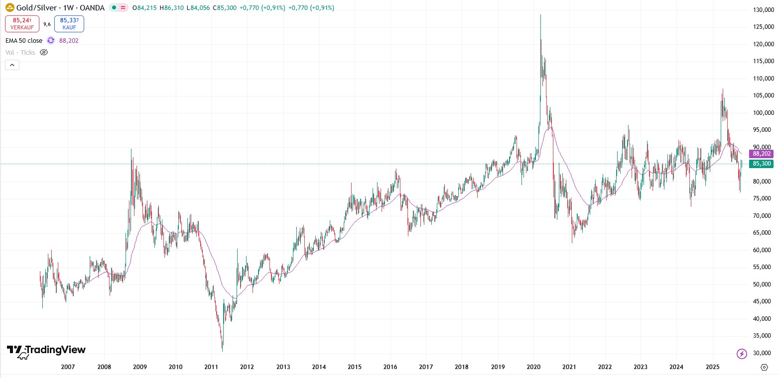und hier Ratio Gold zu Silber, akt. ca. 85
