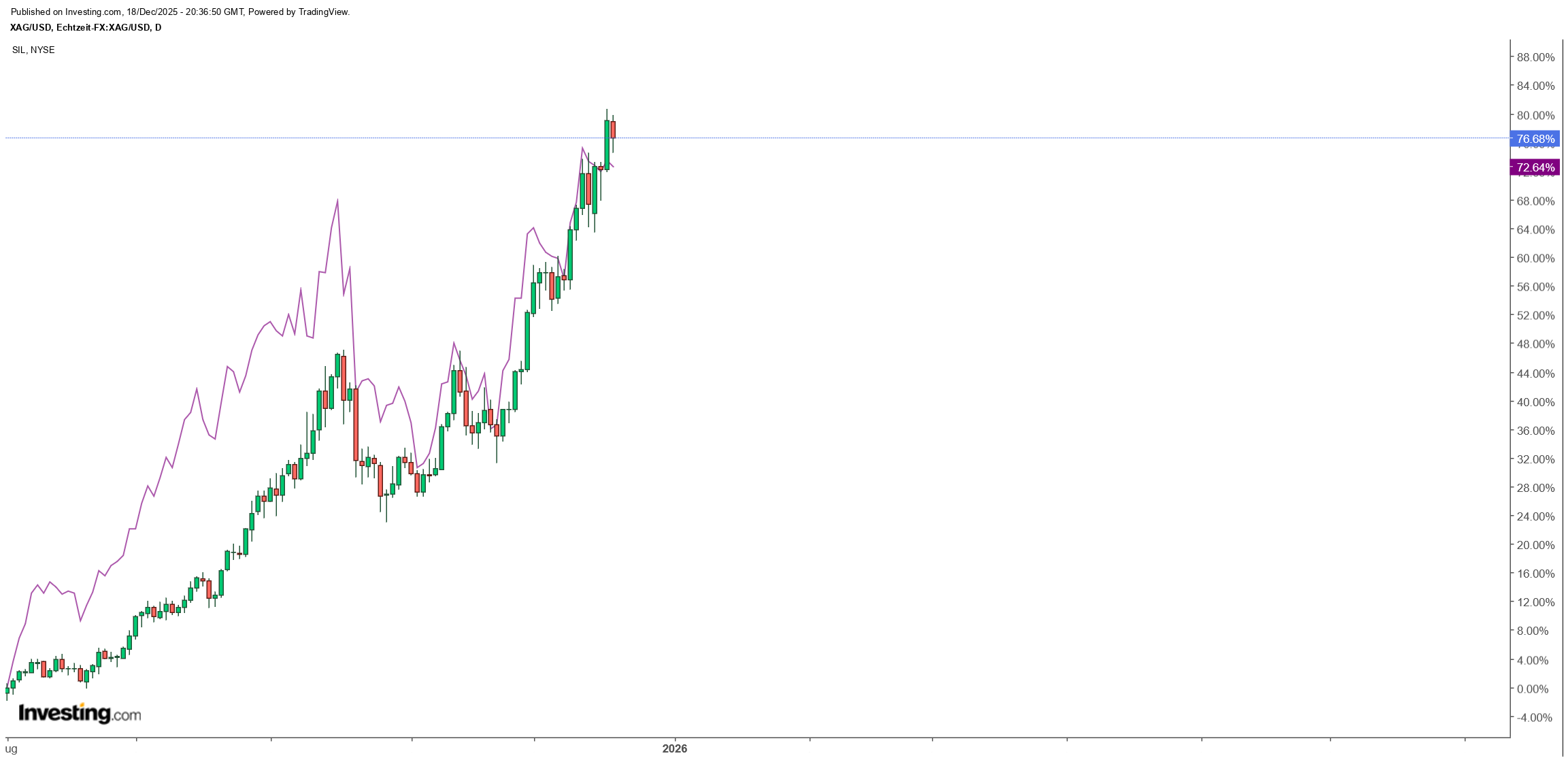 • Wenn wir den Chart komprimieren wirds noch viel deutlicher (rosa Linie = SIL)