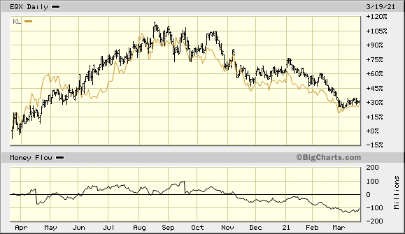 ...Die Kursentwicklung ist enttäuschend, v.a. nach der früheren Begeisterung über Kursanstiege. Aber sehen wir das nicht auch an anderen Stellen ? Kirkland z.B. mit blendender Verfassung hat nahezu die parallele Entwicklung, staun staun