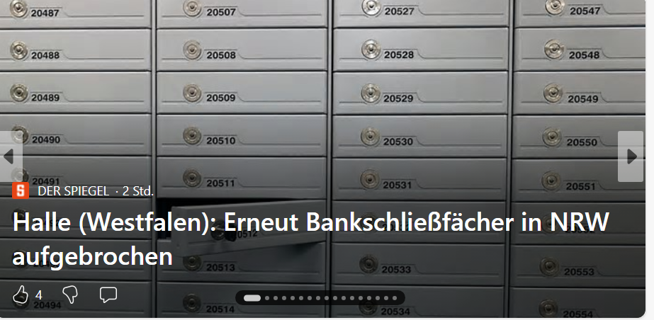 Auf jeden Fall ein immenser Vertrauensbruch seitens Geiger, da Kunden die zwar nicht betroffen sind aber ein Schließfach dort haben, wenn überhaupt, nur aus der Zeitung davon erfahren....