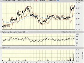 Letztes Jahr bis auf 1,30 CAD hoch und dann bis auf 0,50 runter in Dezember. Dann Gegenreaktion bis Anfang Januar, dann mehrere Wochen volatil seitwärts und die letzten Tage gegen den schwächelnden Minenmarkt plötzlich kräftig weiter nach oben (besonders gestern).