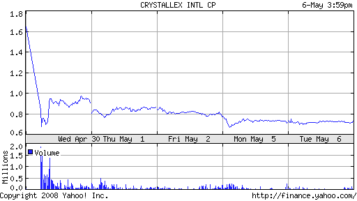 Mr. Gordon Thompson, Crystallex President and Chief Executive Officer, commented that, "During 2007, our project partner the Corporacion Venezolana de Guayana ("CVG"), was formally notified by the Ministry of the Environment and Natural Resources of Venezuela ("MinAmb") that all the requirements for the issuance of the Las Cristinas Environmental permit had been fulfilled." ![]()