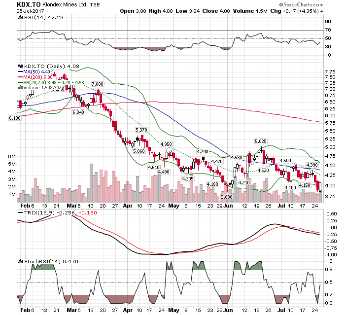 Gestern etwas Fresh Money investiert und wohin ? KDX. Mit Rückkauf zu 4,20 C$ ist Klondex wieder mit Kirkland Topaktie im Depot.