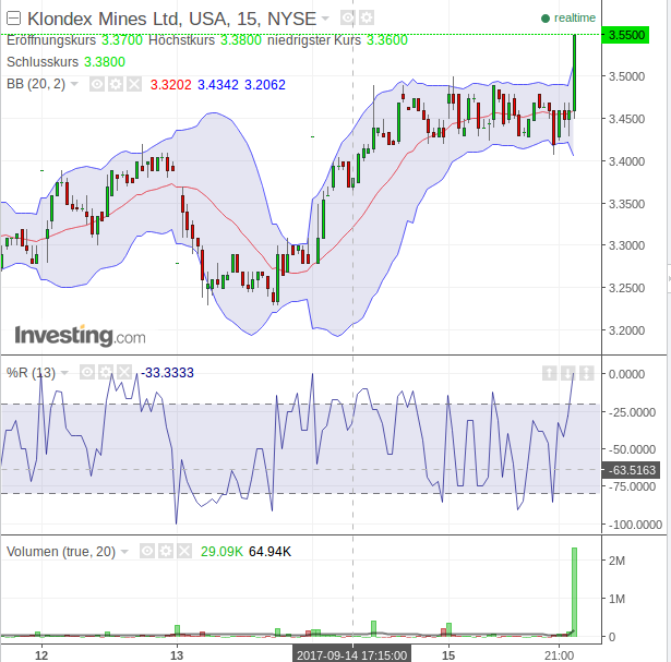 ...Auch eine kritische Nachbetrachtung meiner Bemerkungen vom 09. September. Grundsätzlich halte ich es für notwendig, Charts der Heimatbörse, da grösster Umsatz, zu verwenden. Ich habe aber bemerkt, dass KLDX in New York mehr Umsatz hat. Trotzdem belasse ich es mit dem Chart von KDX.TO. Auf den ersten Blick erkenne ich keine bahnbrechende Unterschiede....