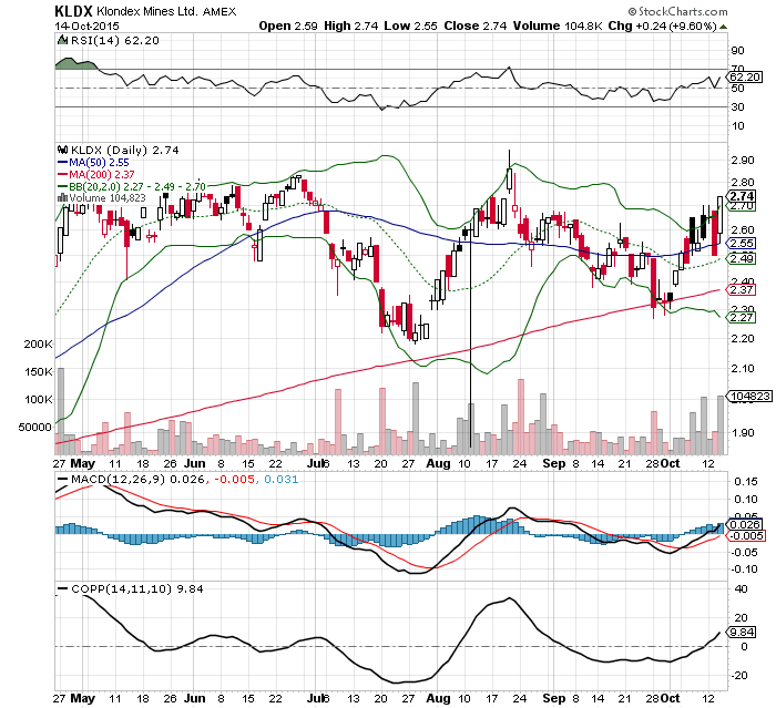 ..."RA: The company we like best based on its continuing potential is Klondex Mines Ltd. (KDX:TSX; KLDX:NYSE.MKT) and its Midas and Fire Creek gold-silver projects in Nevada. Shares trade at $3.32 today, up almost a dollar from March, but our price target is almost twice that.