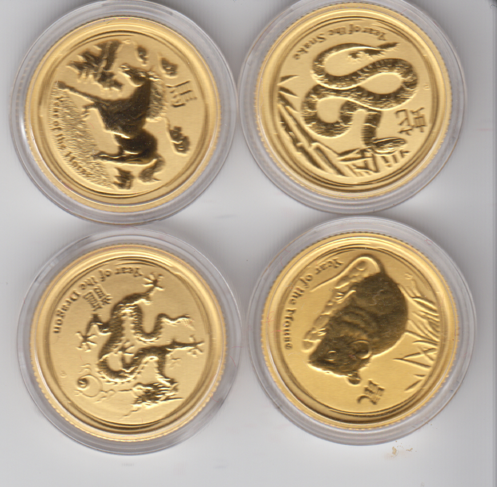 ich habe 4 1/10 Unzen der Lunar ii Serie, Maus, Drache, Schlange, Pferd.