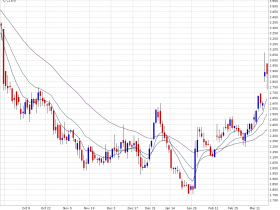 Ich meine, dass bei 2.59 noch immer ein Gap offen ist und es fehlen noch 14 Cents. Tut aber nichts zur Sache, sondern es stellt sich die Frage wie weiter. Der Kurs hat sich zu weit entfernt von den MA's, weshalb es nicht gleich weiter hoch ging. Die MA's holen nun aber auf. Ich wage mal eine Prognose. Noch ein paar Tage weiterhin seitwärts zwischen 2.75 und 3, so dass 9 MA und evt. auch noch 20 MA abgeholt werden, danach nach oben weg. Gap wird somit nicht mehr ganz geschlossen...….