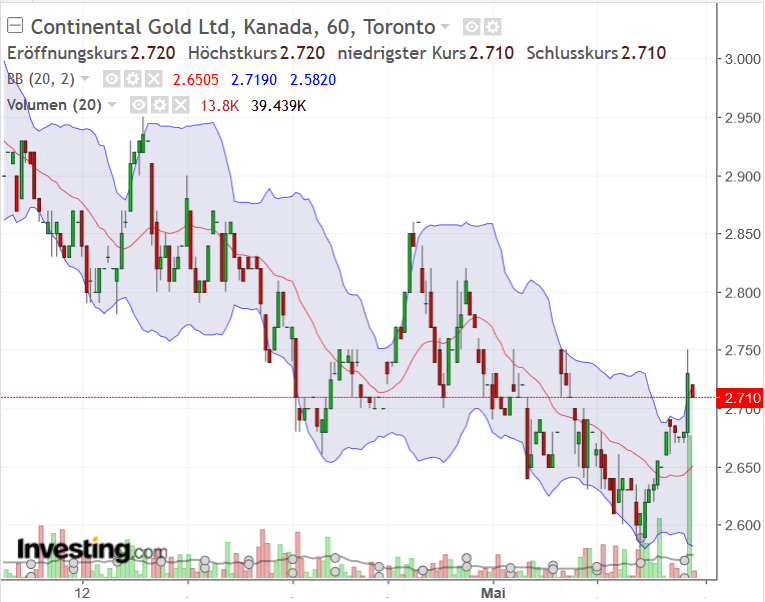 Trotz des jüngsten steilen Kursanstiegs hat Continental Gold noch erhebliches Aufwärtspotenzial. Wenn es keine weiteren negativen Überraschungen gibt und der Goldpreis bei 1.500 $/toz bleibt, sollte die Continental-Aktie bereits im nächsten Jahr nach Beginn der Goldproduktion das 5 $-Niveau überschreiten. Was noch wichtiger ist, diese Schätzung spiegelt nicht das riesige Erkundungspotenzial und die reale Möglichkeit wider, dass die Mine besser abschneidet als geplant. Obwohl die mittel- bis langfristigen Perspektiven des Unternehmens gut aussehen, ist es nicht der richtige Zeitpunkt, um eine neue Position einzuleiten oder die alte jetzt zu ergänzen, da verschiedene technische Indikatoren zeigen, dass die Wahrscheinlichkeit einer kurzfristigen Preiskorrektur hoch ist.