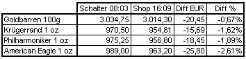 Habe mal die im Internet veröffentlichten Schalterkurse (sind von 08:03 Uhr!!!) mit den aktuellen im Shop verglichen (Bild anbei).