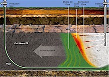 Bin mir aber noch nicht so ganz im klaren, wie groß der Vorteil gegenüber anderen Verfahrenstechniken ist. Husky, Statoil und Petro-Canada u.a. verwenden ja die sog. "steam assisted gravity drainage technology" (SAGD). (ansehnliche Animation von Husky http://www.huskyenergy.ca/about/downloads/Husky_SAGD.wmv )