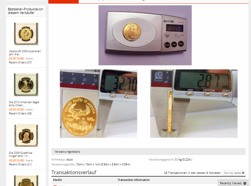 Gold stößt halt ab, Waage zeigt Gewicht.