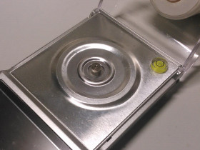 Das ist jetzt die Billigstloesung. Ich nehme an, Du meinst diese. 1kg-Barren sind fuer das Apotheker-Doeschen etwas zu schwer. Koennte man bei Bedarf sicher stabiler bauen. Statt auf den Deckel koennte man das Doeschen (oder ein Plastikrohr) auch direkt auf die Waage stellen. Hat ja so praktische Zentrierhilfen.