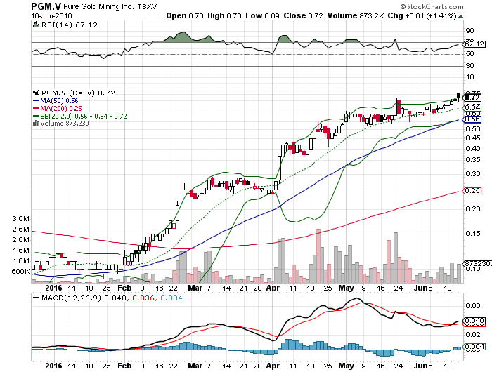 "James Kwantes, in the April 30, 2016, edition of Resource Opportunities, tells readers why to buy Pure Gold Mining Inc., recently 53 cents. This is the first time Mr. Kwantes has recommended the stock, but a previous editor of the newsletter, Lawrence Roulston, said buy on July 21, 2014, at 39 cents....