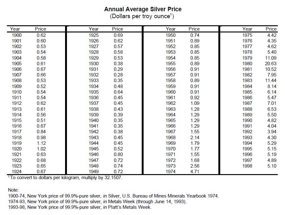 Demnach müsste ja damals eine Unze Silber zu Anlagezwecken um die 30 Cent gekostet haben, während die Reichsmark wegen dem hohen Nennwert und dem hohen Preis kaum als Anlage zu empfehlen war.Wer sich also damals für, sagen wir mal 25 Cent/Unze, Silber gekauft hat, hat heute sein Vermögen ver-100-facht.