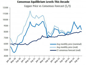 RBC senkte seine Schätzung für 2025 auf 8.800 $ (von zuvor knapp unter 10.000 $), während BMO für das nächste Jahr ebenfalls davon ausgeht, dass sich Kupfer um die Marke von 4,00 $ bzw. 8.800 $ einpendeln wird."