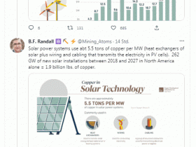 "Kupfer wird in Elektrofahrzeugen und Solarzellen sowie in Wind-, Wasser- und geothermischen Anlagen verwendet. Im Vergleich zu fossilen und nuklearen Energiequellen wird Kupfer in erneuerbaren Energiesystemen fünfmal so viel verwendet. Angesichts der sinkenden Gehalte in den alten Minen und der steigenden Nachfrage könnte der Kupferpreis auf 9 bis 10 Dollar pro Pfund steigen, schätzt Gianni Kovacevic, Gründer von LithiumBank Resources. Derzeit wird Kupfer zu einem Preis von unter 4 $ pro Pfund gehandelt....