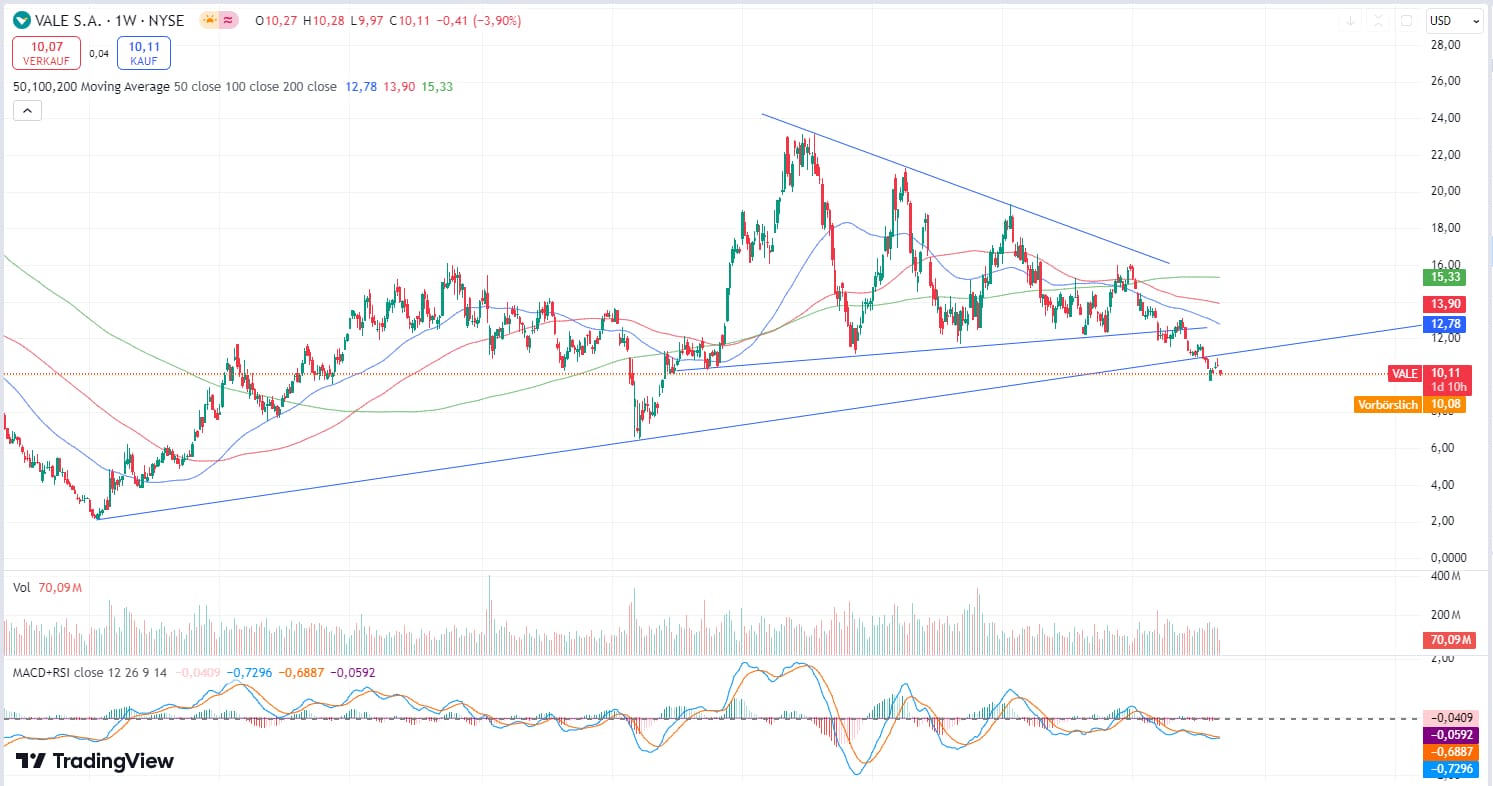 Auch andere Rohstoff-Titel (Vale, Rio Tinto etc.) haben das zulaufende Dreieck für erste nach unten verlassen.