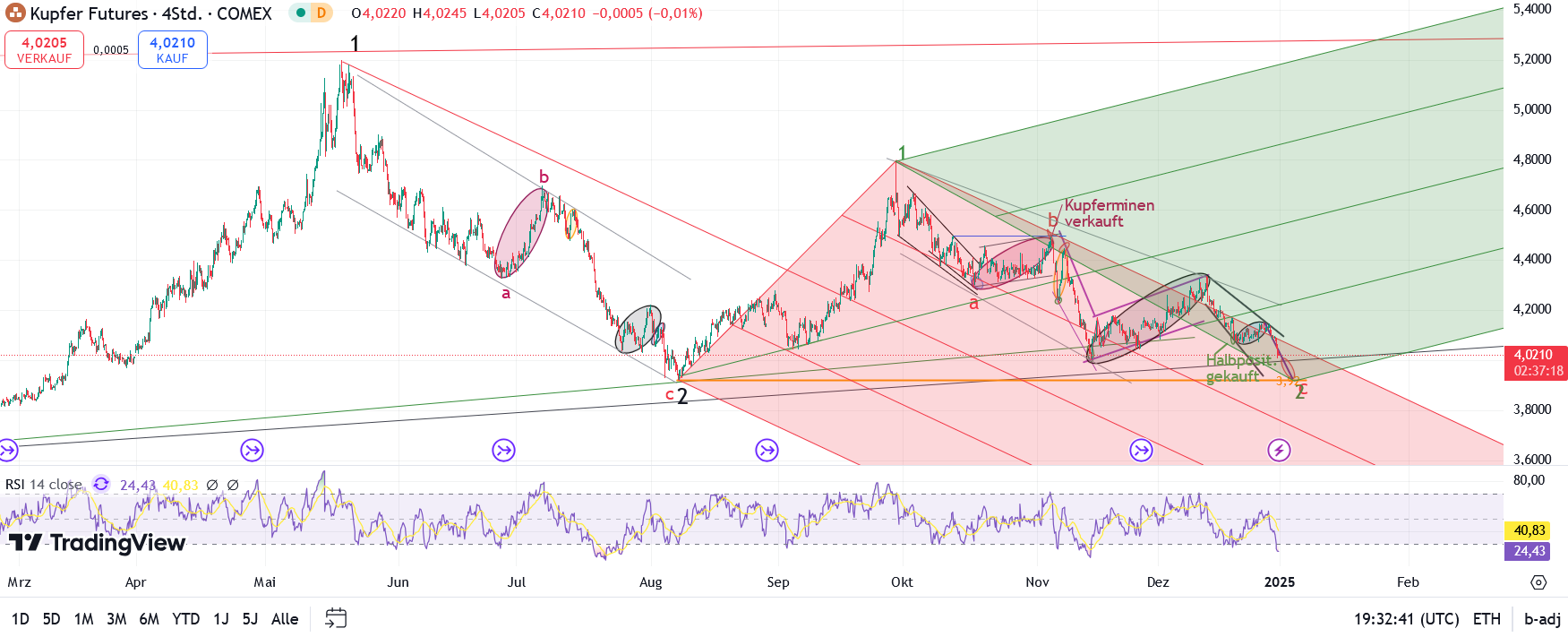 Ähnlich wie bei Gold ist bei Kupfer nicht klar ob es eine "klassische ABC Korrektur" (rot) oder ein Dreieck mit einer ABCDE (orange) wird.