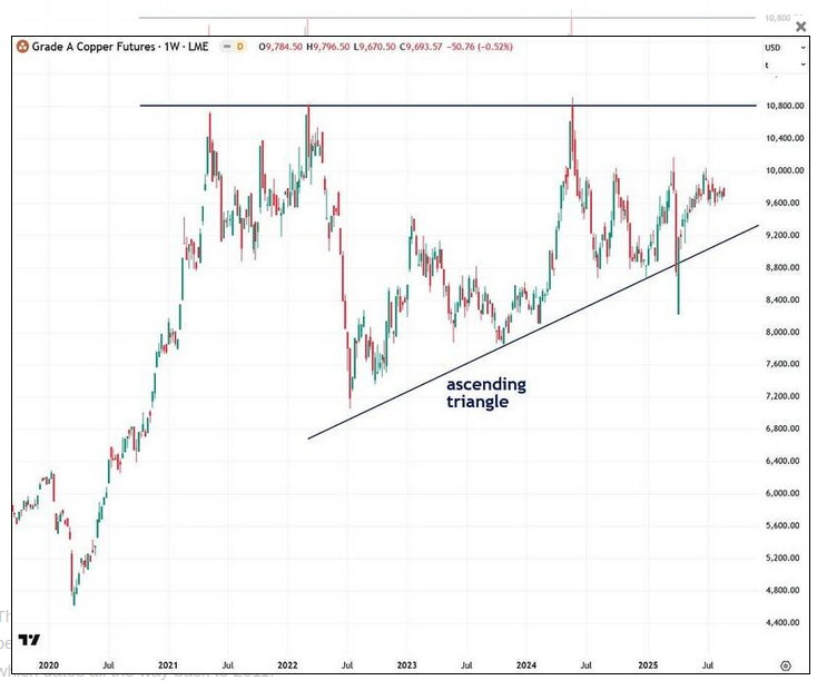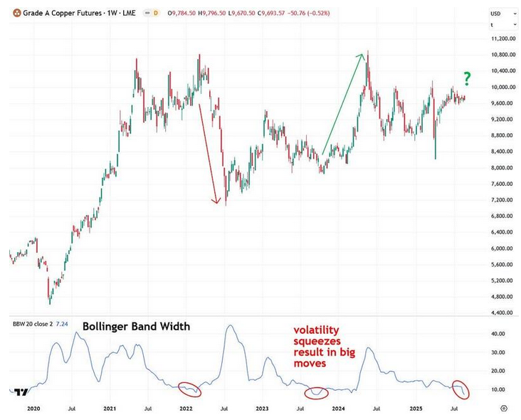 Das sollte das Kupfer / Platin Ratio sein. Momentan sieht es danach aus, als wenn sich eine bullische Divergenz zu Gunsten Kupfer im RSI bildet.