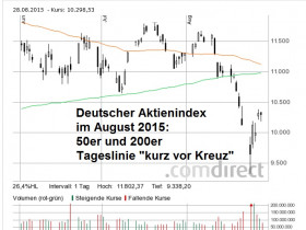Im Moment beobachte ich nur sehr genau, was sich tut. Der 50er Gleitende Durchschnitt hatte kurz vor Mitte August den Absturz des Dow Jones Index klar vorweg angekündigt, als er den 200er Gleitenden Durchschnitt nach unten durchschnitt.