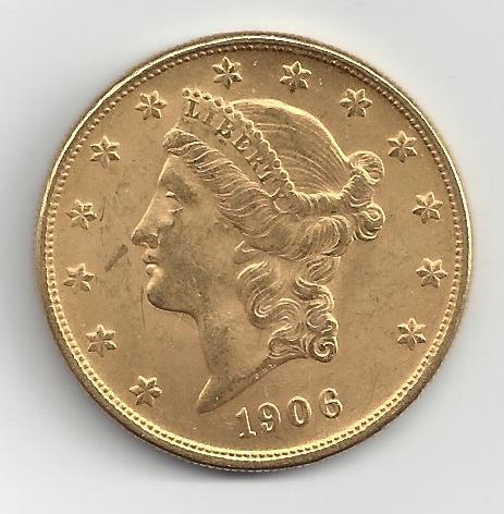 in meinem Sammlergebiet (Altdeutschland Gold, Kaiserreich und lat. Münzunion) kenne ich mich aus. Ab und zu kaufe ich mir allerdings auch eine Handvoll Übersee-Gold. Dieses Mal waren einige 20 $ Stücke dabei, u.a. diese 20 $ 1906. Das Gewicht beträgt 33,43g , der Durchmesser 34mm (elektronische Schieblehre), auch die Stärke der Münze stimmt. Die Messung mittels Ultraschall zeigt auch Normalwerte an. Dennoch mag ich dieses Stück nicht. Ich finde, dass die Wappenseite irgendwie "flau" ausgeprägt ist. Ich glaube, es handelt sich um eine Prägefälschung in korrekter Legierung. Leider habe ich keine weiteren Stücke aus dem Jahr 1906. Wer kann helfen? Danke.