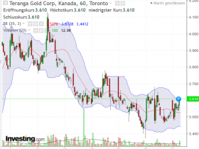 • Nun hat es Teranga geschafft , binnen kürzester Zeit , einen Doppelboden zu produzieren , d.h sie widerspiegelt einen POG-Kurs von 1160 $ , obwohl wir bei 1184$ stehen ! Fundamental ist alles in Ordnung , warum dann dieses Vorauslaufen ? Ganz normal ist das nicht . Die stärkeren Aktien zeigen ein andes Verhalten. Vermutl. hat hier jemand kalte Füße bekommen - ich habe jedenfalls den Doppelboden genutzt , um meine Position um 50% zu vergrößern.