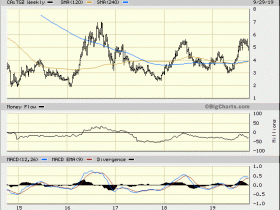 der Widerstand bei 5,70 C$ wird gerade gesprengt und da das Kräftesammeln 4 Monate dauerte , ist da einiges kurzfristig zu erwarten ...