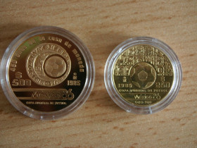 250 Pesos Mexiko WM 1986 in PP (Auflage 4.506 Stk) mit 8,64 Gramm 900er Gold (1/4 Unze fein) -> Preis 128 EUR
