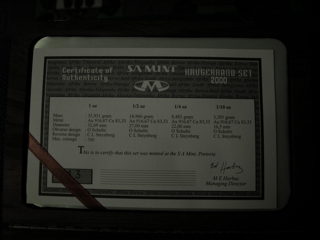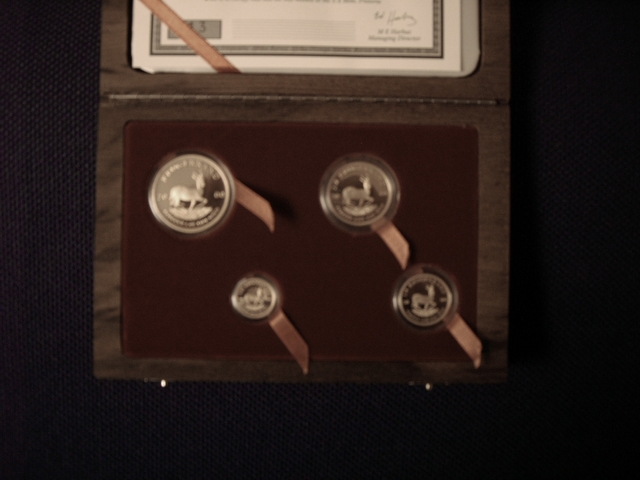 1 x Kästchen Krügerrand mit 4 Münzen 1/1, 1/2, 1/4, 1/10 Unze pol. Platte (Prestige Set Krügerrand 2000) zu 1350,- €