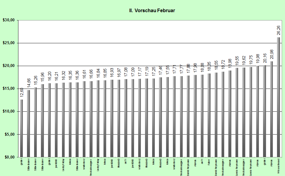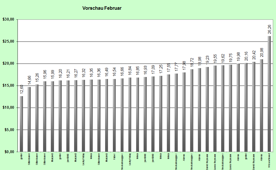 - Gewinner unseres Spieles wird der Silberspieler sein, dessen Tipp zum letzen Handelstag des Spielmonats, dem tatsächlichen Silberkurs zu diesem Zeitpunkt am besten entspricht. Es gilt der Globex-Schlusskurs NY in US-$ 22:30 MEZ.