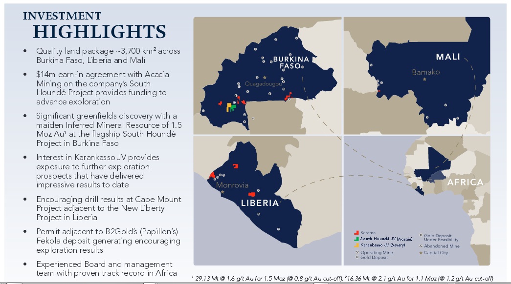 Sarama Resources Ltd is a West African focused gold explorer with substantial landholdings in Burkina Faso, Liberia and Mali.