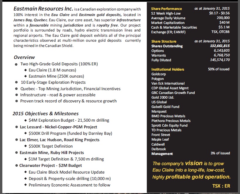Sep. 17, 2014 11:01 AM ET | About: Eastmain Resources Inc. (EANRF)
