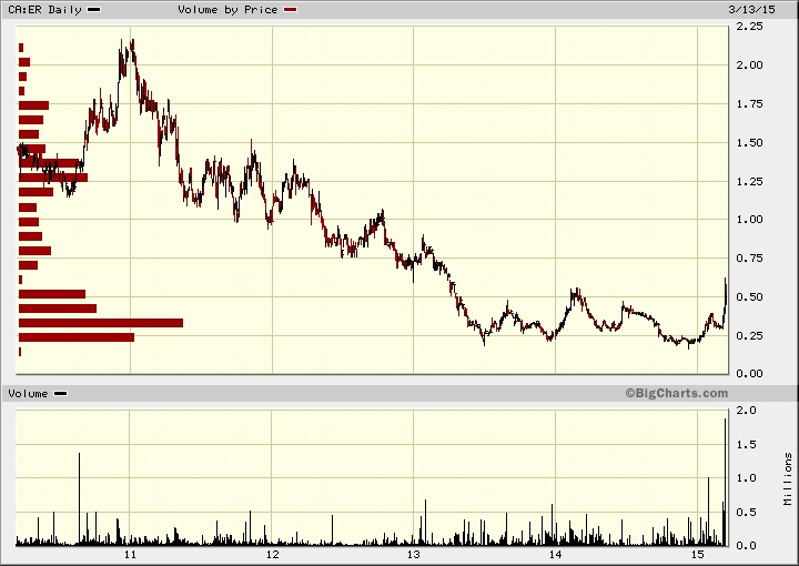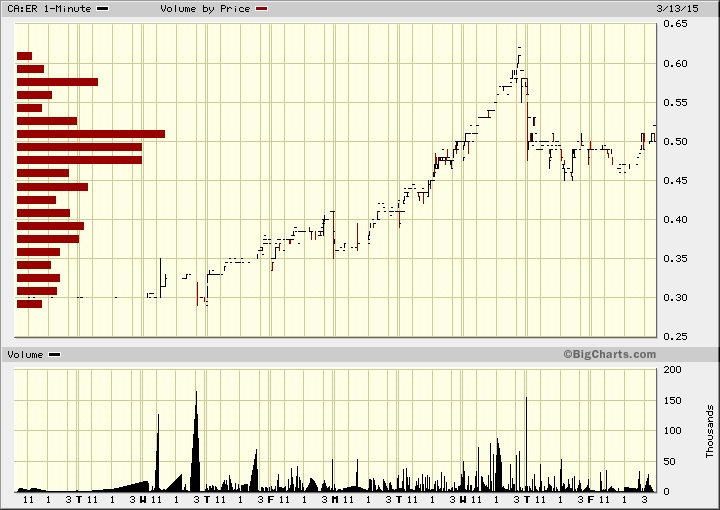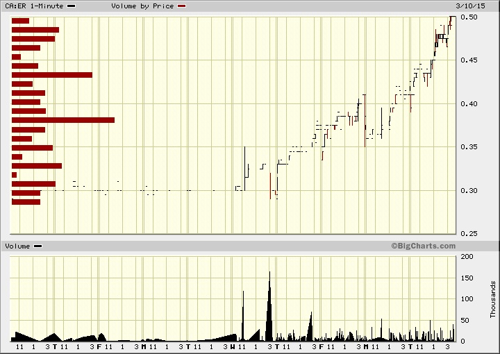 Seit Wochen habe ich sie auf der Watchlist und nun, nachdem sie kurz bevor ich liquide war, urplötzlich abhob, dachte ich schockiert, der Zug sei abgefahren. Nun: Heute bin ich zwar teurer als ursprünglich berechnet - doch noch gerade so reingekommen in Kanada. Zu 0,365 Ca$ ... mit einer für meine Mittel recht großen Portion (ähnlich wie bei Claude Resources neulich).