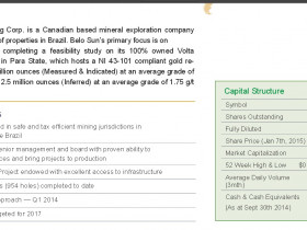 Belo Sun Mining’s (TSX: BSX; US-OTC: VNNHF) Volta Grande gold project in Brazil’s Para State has garnered positive attention from analysts after a feasibility study cut the project’s costs, making it more attractive.