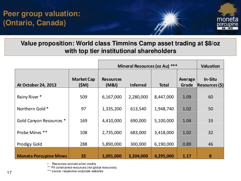 Die bereits existierende PEA ist von 2012 und es bedürfte schon über 1300 $ - 1500 $ beim Gold (oder eben fallende Produktionskosten aufgrund des Ölpreises? ...), um sie mächtig zu bewegen, - dann allerdings dürfte der Schub unvergessen bleiben. Die Mine zu errichten würde über eine halbe Milliarde kosten, allerdings mehrere Milliarden erbringen, über die Jahre, wenn ich es recht sehe.