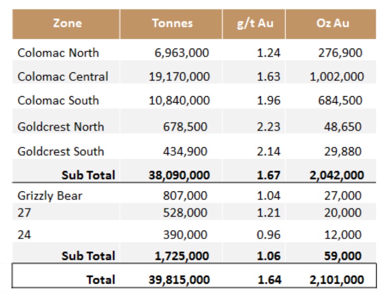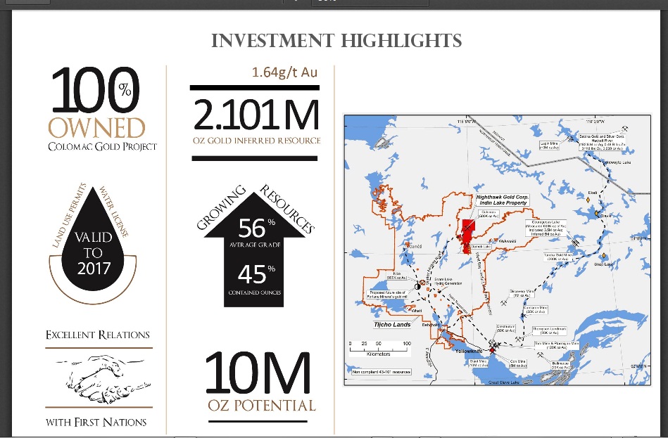 A Preliminary Economic Assessment (Dec 2012) for the flagship Golden Highway generated a Net Present Value of $748M using US$1,350 gold based on the NI 43-101 resource estimate of 1,091,000 ounces indicated (31.1 Mt at 1.09 g/t Au) plus 3,204,000 ounces inferred (83.3 Mt at 1.20 g/t Au), clustered within four kilometres of similar geology.