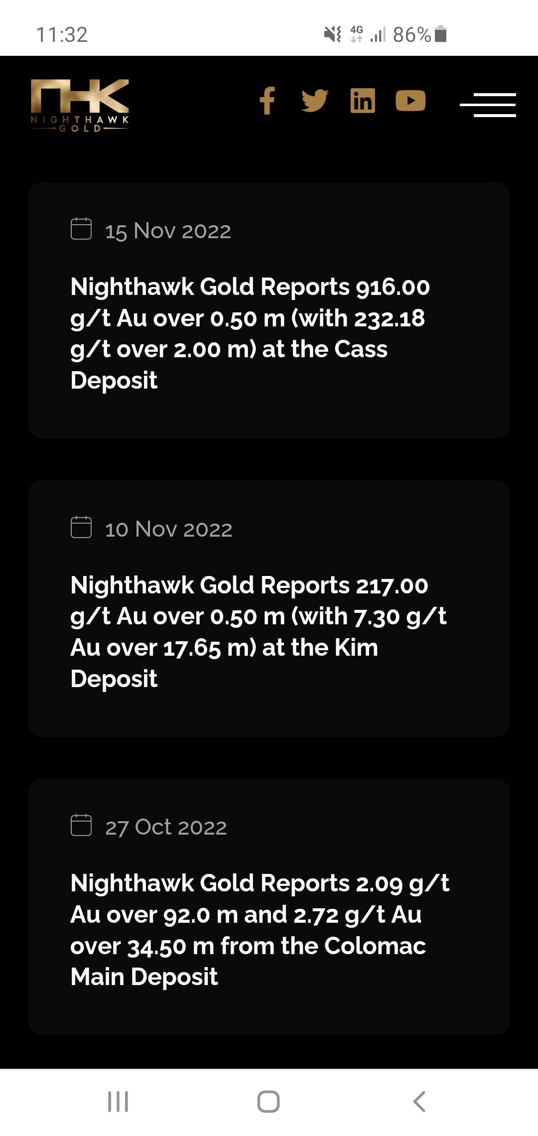 Wir haben jetzt einen Aufwärtsimpuls, hervorragende BE (https://nighthawkgold.com/investors/) und neben Cudney kauft auch der Firmenchef aktuell Aktien im freien Markt ein.