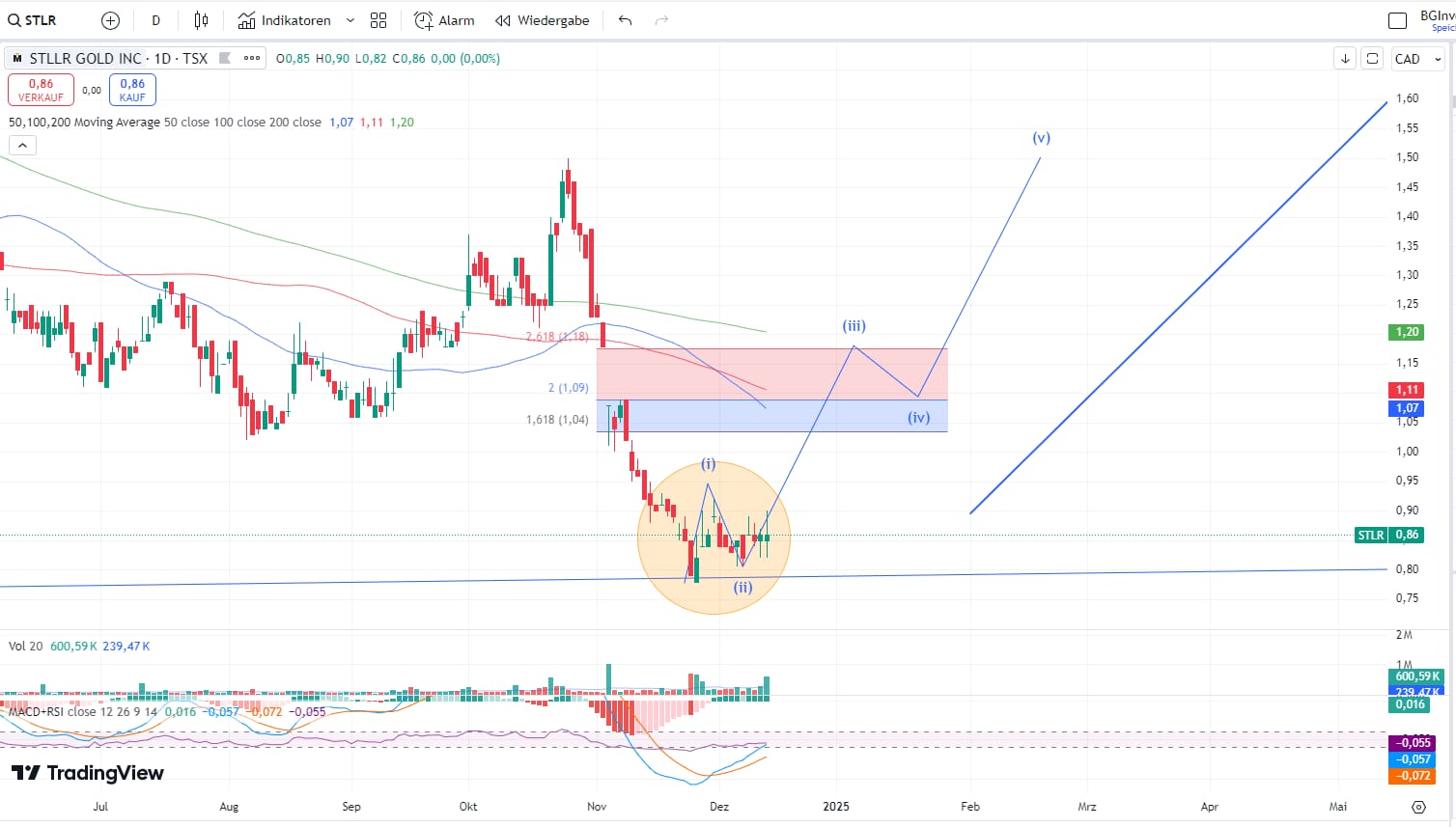 Seit dem Kauf bei 0,79 CAD konnte STLLR über 30% zulegen. Begleitet wurde der Anstieg mit hohen Volumen. ![]()