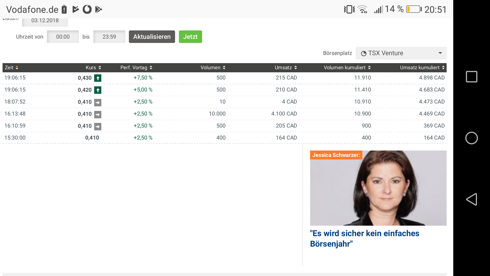 Seid Ihr noch dabei, oder hat schon SL gegriffen? War in Kanada heute unter 39 ct. Finde es schwierig, im Chart sinnvolle Hinweise für einen Einstieg zu finden. Es sei denn, die 45 ct. würden nachhaltig wieder erobert. Volumen ist im Wesentlichen weiter flat. (Habe selber aktuell keine LIO)